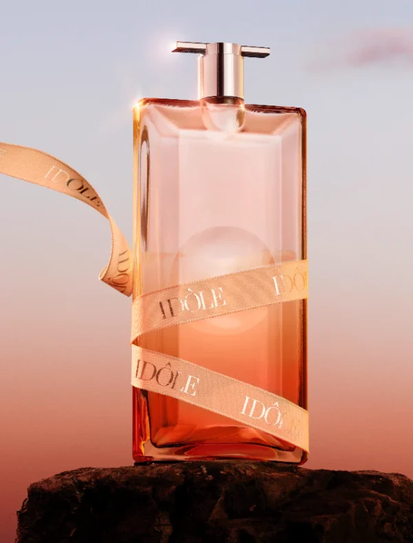 La nouvelle Eau de Parfum florale Idôle Now essentiellement embrasse l’horizon de son sillage enveloppant, lumineux et addictif.